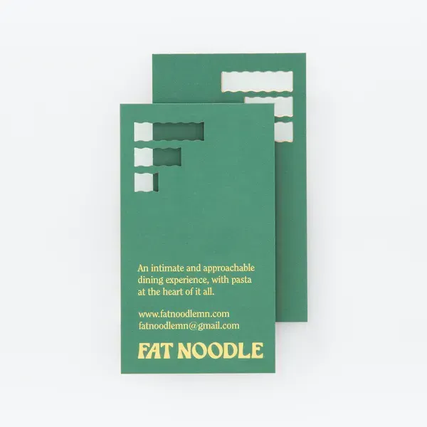 Establezca conexiones con clientes y proveedores con tarjetas de presentación premium para restaurantes. Una parte esencial de los materiales de marketing de su restaurante, nuestras plantillas de tarjetas de presentación son perfectas para usted y sus empleados. Con una variedad de tipos de papel, gramajes y acabados, incluso elaboran prácticas tarjetas de fidelización para restaurantes. O considere agregar un cupón en la parte posterior para generar nuevos negocios. Personalice sus propias tarjetas de presentación únicas con opciones de tamaño, recubrimiento y corte por láser digital y deje una impresión duradera.